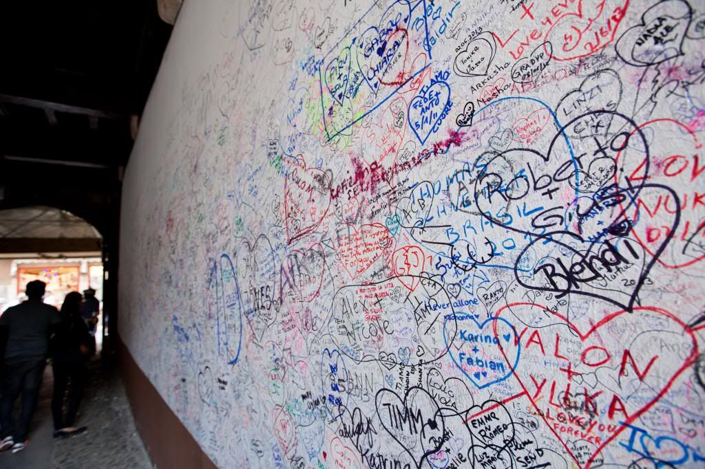 | A wall of love, but I didn't write on it. You see, the wall is very crowded and more people want to write on it. That means someday, soon, it will be painted over. I don't want my love to be buried, therefore, I didn't write~ |